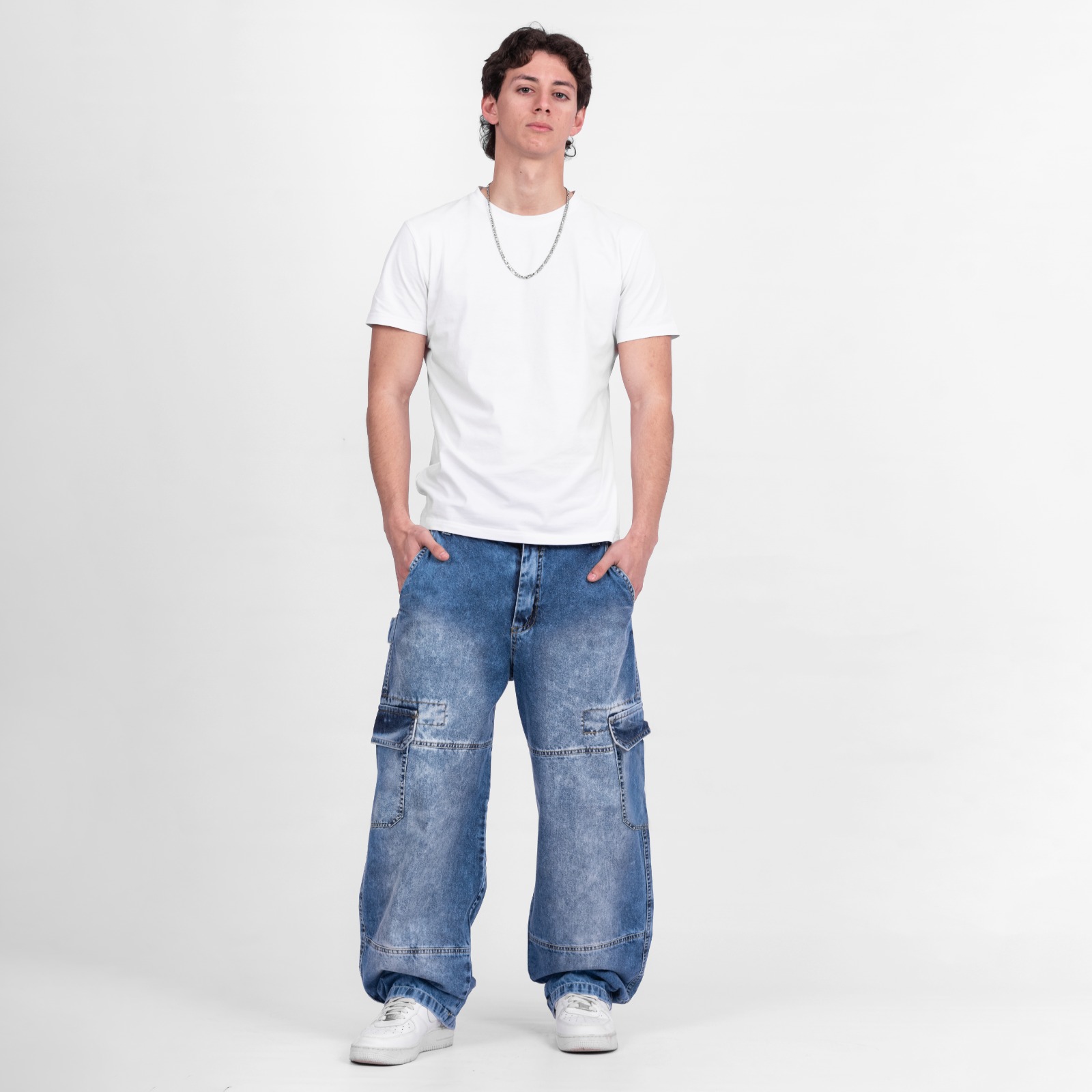 PANTALON DENIM BAGGY CARGO. 100% algodón | Rígido.